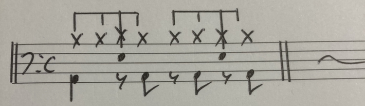 前項のリズトレの譜面を見ながら、頭の中で8ビートに変換しながら練習するのも良いと思います。適度な緊張感が必要とも言えますね。練習の仕方も工夫してみてください。