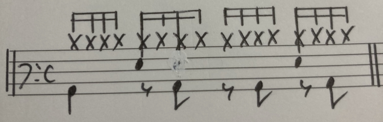 バスドラ部分に当てはめての8ビート練習